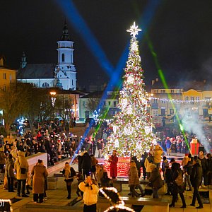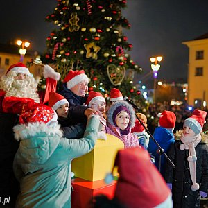 Już od godz. 16:00 Rynek zmienił się w mikołajkową krainę. Najmłodsi mogli spotkać się ze świętym Mikołajem w niecodziennych "saniach", a ich rodzice rozgrzewali się przy kubkach gorącej czekolady w rytmie bożonarodzeniowych hitów granych przez DJ-a. Punktualnie o 17:00 — w blasku światełek i ozdób — prezydent miasta Artur Łakomiec z gromadką pomocników odpalił iluminacje nowej choinki, co nadało centrum naszego miasta prawdziwie świąteczny klimat.