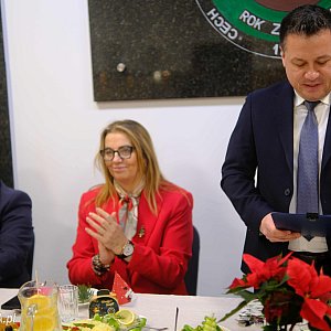 Głos zabrała również starosta Agnieszka Rogalińska, która podziękowała przedsiębiorcom za ich trud i wkład w rozwój miasta oraz powiatu. Zaakcentowała, że lokalna przedsiębiorczość powinna być nieustannie wspierana, a samorząd stara się aktywnie uczestniczyć w działaniach na rzecz rozwoju regionu. Życzyła wszystkim realizacji celów, pomyślności, zdrowia oraz czasu spędzonego w gronie najbliższych. Wyraziła nadzieję na trafne inwestycje i owocną współpracę z powiatem ostrowieckim.