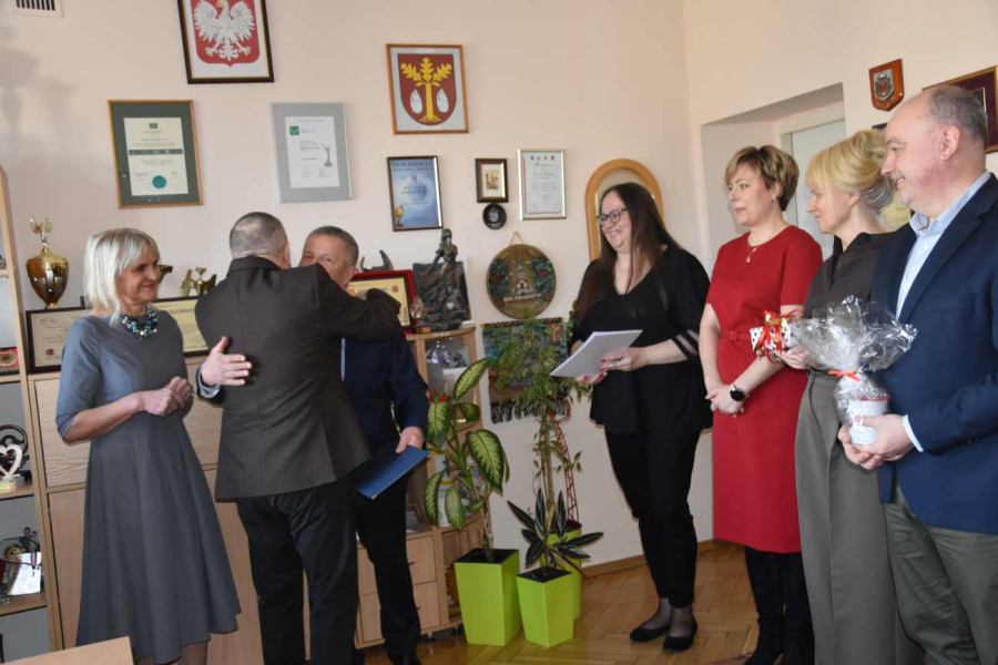 Niezwykle ciepło został pożegnany przez wójta gminy Bodzechów Jerzego Murzyna i współpracowników odchodzący na emeryturę naczelnik wydziału techniczno - inwestycyjnego Urzędu Gminy Bodzechów, Jarosław Dębicki.