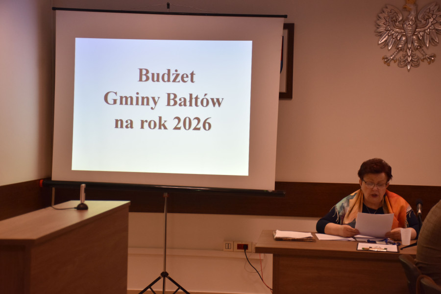 Tuż przed końcem roku radni Rady Gminy w Bałtowie debatowali nad uchwalą budżetową. Sesję Rady Gminy otworzył przewodniczący Henryk Cichocki, główne założenia uchwały budżetowej przedstawiła wiceprzewodnicząca Anna Mroczek, zaś szczegóły budżetu gminy na 2026 rok przedstawił wójt Hubert Żądło.