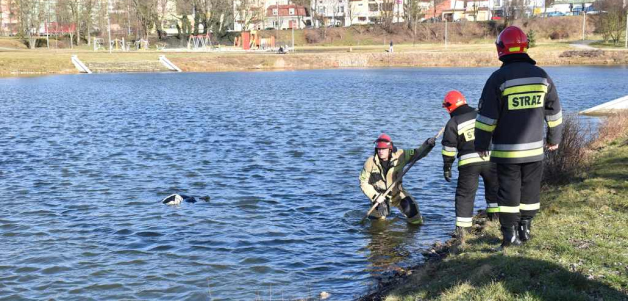 ?php>Wszystko rozpoczęło się od redakcyjnej interwencji, gdyż zauważyliśmy pływający na powierzchni stawu skafander z plecakiem. Zaalarmowaliśmy Straż Miejską, a przybyły na miejsce komendant Andrzej Kaniewski pokierował akcją. Strażacy, którzy przyjechali na miejsce, przy pomocy bosaka wydobyli na brzeg mężczyznę. Na miejscu akcję reanimacyjną podjęli strażacy, kontynuowali ją ratownicy medyczni. Nieprzytomnego mężczyznę przewieziono do szpitala. Niestety, nie udało się uratować mu życia.